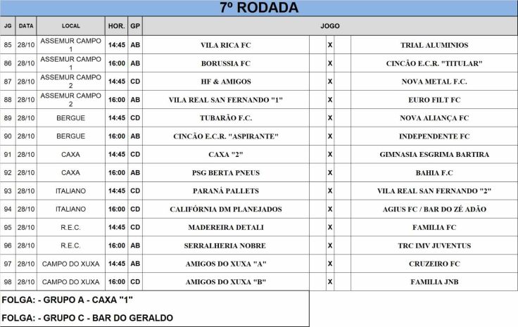 12ª COPA ROLÂNDIA DE FUTEBOL SUIÇO TEM SÉTIMA RODADA NESTE FIM DE SEMANA SECRETARIA MUNICIPAL DE ESPORTES PROMOVE O CERTAME Confira o boletim oficial, com todos os detalhes em anexo. ...