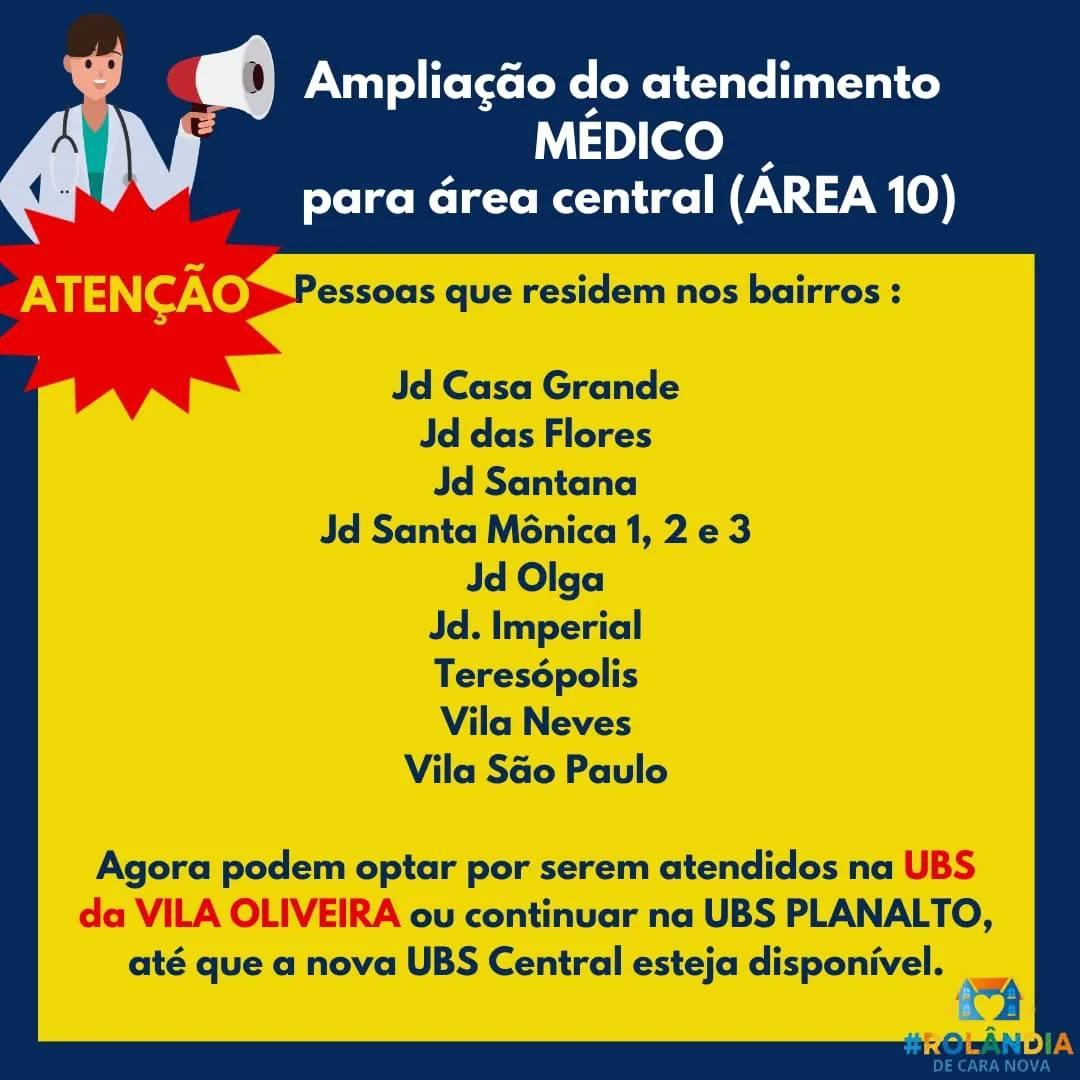 AMPLIAÇÃO DO ATENDIMENTO MÉDICO PARA A ÁREA CENTRALRecado importante da secretaria de Saúde....