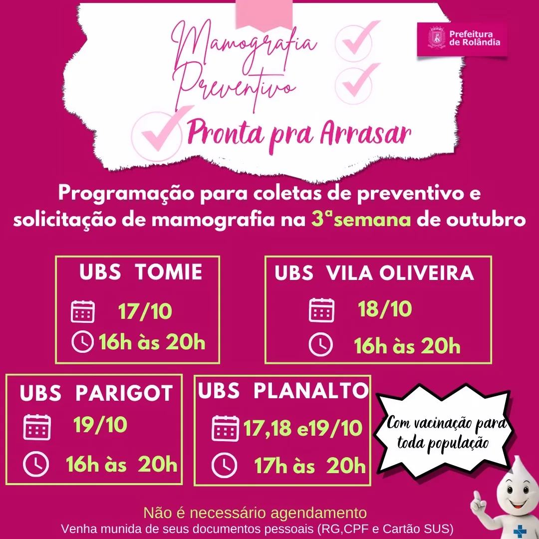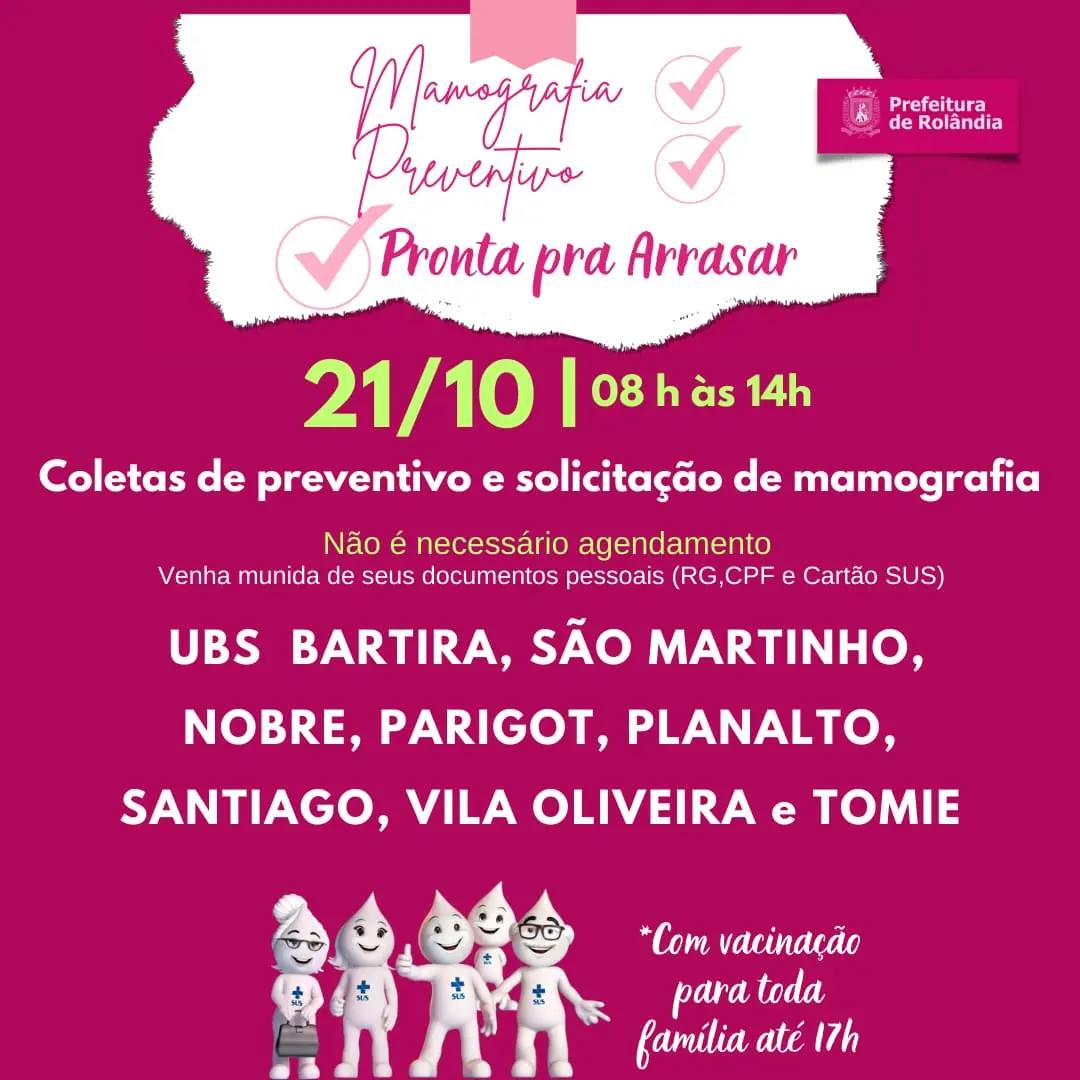 MULHERES DE ROLÂNDIA!A secretaria de Saúde convida você ficar "pronta pra arrasar" neste outubro rosa!...