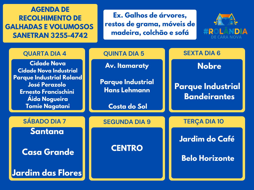 AGENDA DA SANETRAN PARA RECOLHER GALHADAS E VOLUMOSOS As Secretarias de Serviços Públicos e de Agricultura e Meio Ambiente informam que a empresa terceirizada que presta serviço ao município, a SANETRAN, faz a divulgação das regiões em que vai...