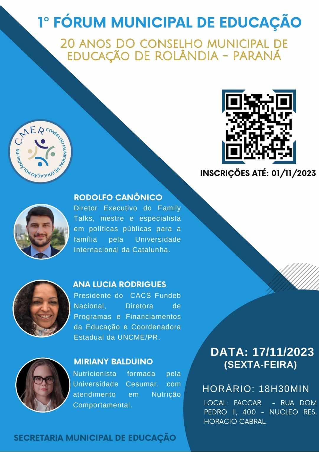 CONVITE "1° FÓRUM MUNICIPAL DE EDUCAÇÃO" É com grande satisfação que a secretaria de Educação convida para o "1° FÓRUM MUNICIPAL DE EDUCAÇÃO", em comemoração aos 20 anos do Conselho Municipal de Educação de Rolândia. O evento é ...