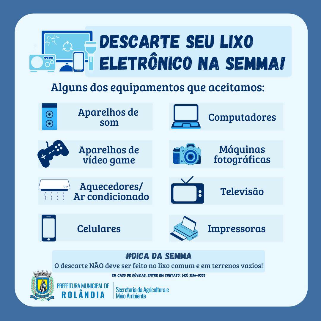 TRAGA SEU LIXO ELETRÔNICO PARA A SEMMALixo eletrônico engloba computadores, tablets, monitores, teclados, impressoras, câmeras fotográficas, aparelhos de som e muito mais. Traga para a SEMMA esses e outros eletrônicos e eletrodomésticos. Disp...