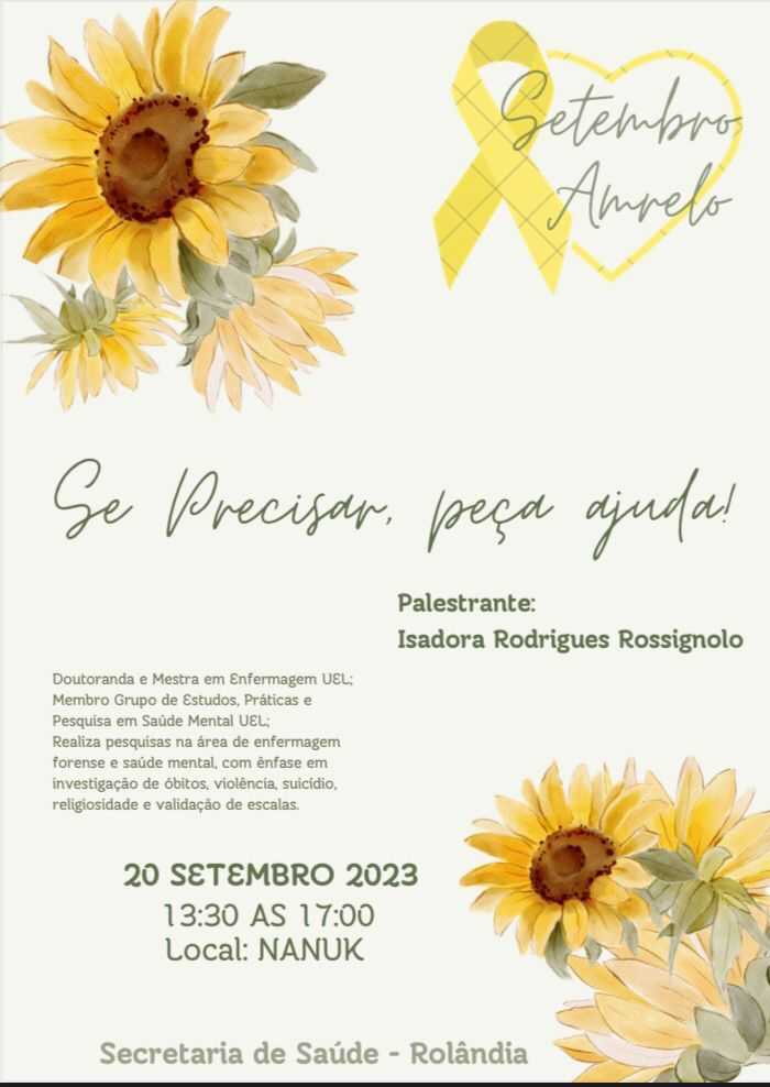 CAMPANHA "SETEMBRO AMARELO" VALORIZA A VIDAA equipe de Saúde Mental, da secretaria de Saúde, está distribuindo cerca de 500 plantas, em prédios públicos e nas Unidades Básicas de Saúde do município, dentro da campanha "setembro amarelo". O ob...