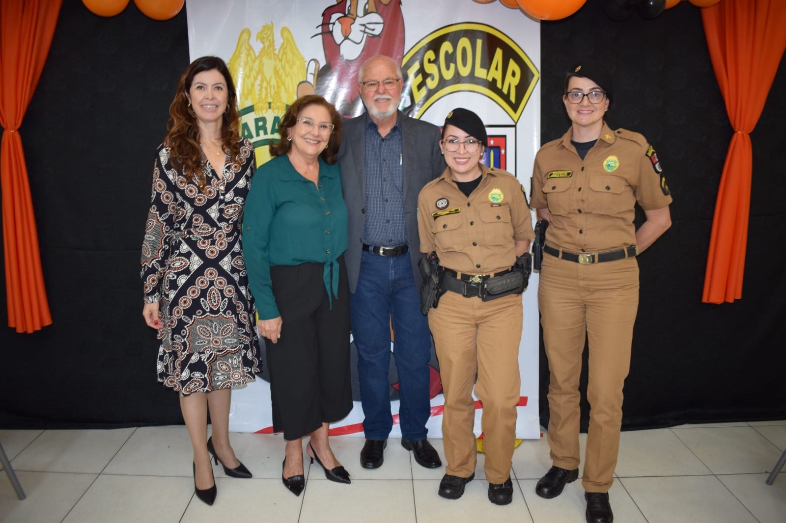 AILTON MAISTRO PRESTIGIA FORMATURA DO PROERD COM ALUNOS DA ESCOLA AQUARELAO prefeito Ailton Maistro, a primeira-dama Ana Maria Mungo Maistro, a secretária de Educação, Leise Camargo e o presidente da Câmara, Reginaldo Silva participaram na sede d...