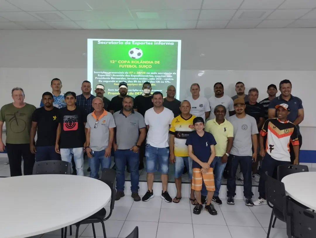 ARBITRAL DA 12° COPA ROLÂNDIA DE FUTEBOL SUIÇONa noite desta sexta-feira, na FACCAR, a secretaria de Esportes realizou o arbitral para definir o regulamento e a fórmula de disputa da "12° Copa Rolândia de Futebol Suiço". O secretário de Espor...
