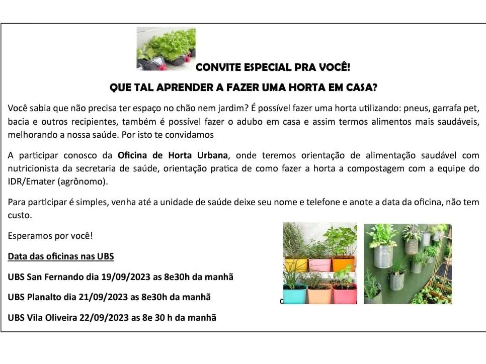 Quer aprender a fazer uma horta na sua casa? Venha participar!...