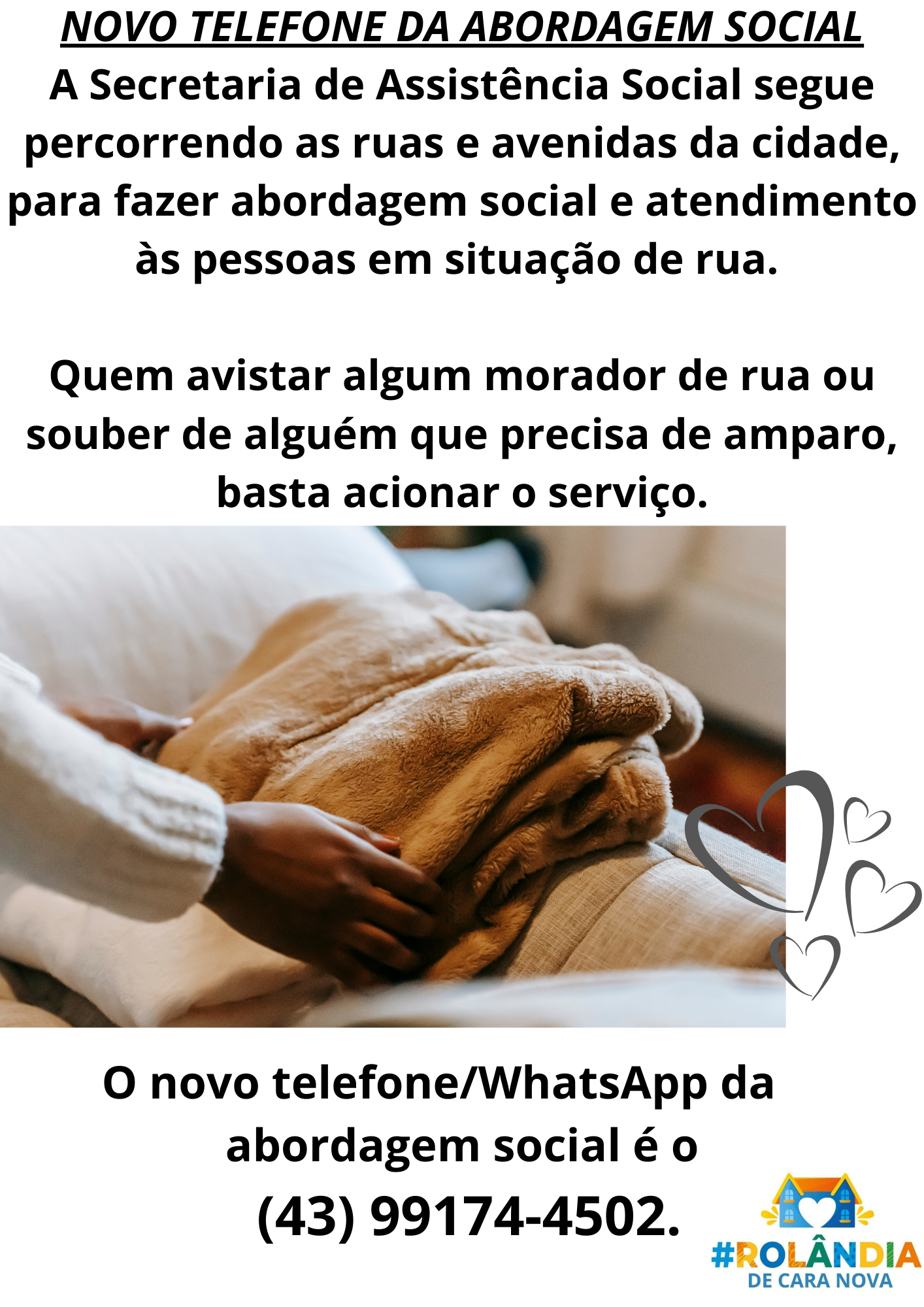 NOVO TELEFONE DA ABORDAGEM SOCIALA Secretaria de Assistência Social segue percorrendo as ruas e avenidas da cidade para fazer abordagem social e atendimento às pessoas em situação de rua. Na oportunidade, é oferecido o abrigamento. Quem recusa...