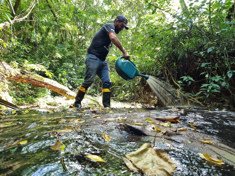 SEGUE APLICAÇÃO DO BIOLARVICIDA BTI; AÇÃO COMBATE OS "BORRACHUDOS"A equipe da Secretaria de Agricultura e Meio Ambiente (SEMMA) realiza a aplicação do biolarvicida BTI, que combate e diminui os mosquitos conhecidos como "borrachudos". A açã...