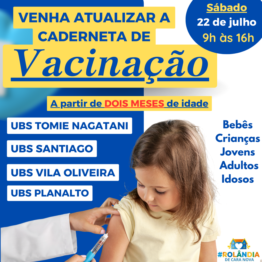 NESTE SÁBADO, DIA 22 DE JULHO, DAS 9H ÀS 16H, A SECRETARIA DE SAÚDE VAI FAZER UMA CAMPANHA DE MULTIVACINAÇÃO PARA ATUALIZAÇÃO DAS CADERNETAS DE VACINAÇÃO!Vai ter dose contra gripe, covid, dentre outras!A partir de dois meses de vida!Vem vaci...