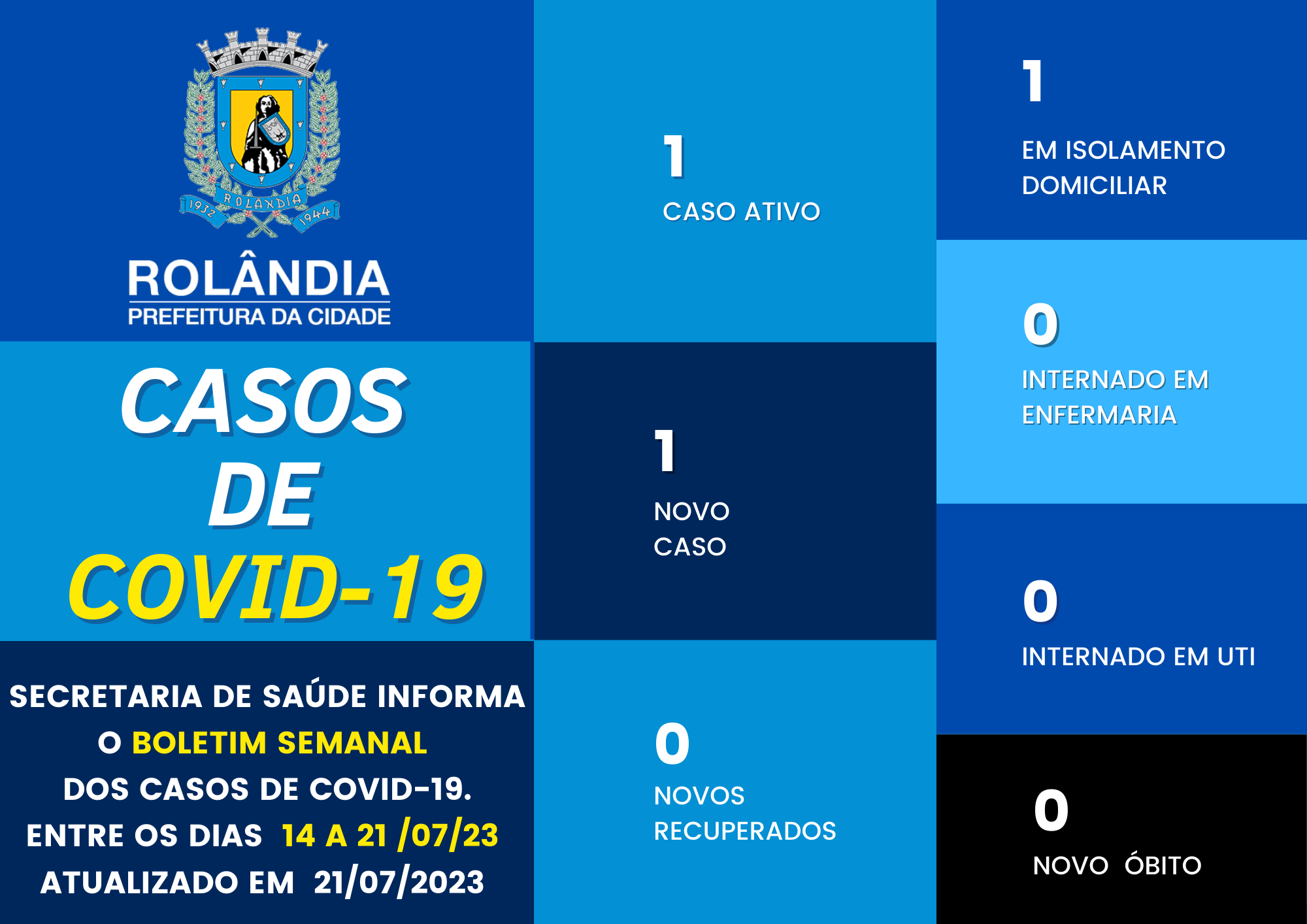 BOLETIM COVID-19 -21.07.2023A secretaria municipal de Saúde informa sobre os casos de covid-19.Na atualização do boletim, uma contaminação. Há um caso ativo de covid-19 em Rolândia. Paciente está em isolamento domiciliar.#rolandialivredacovid...