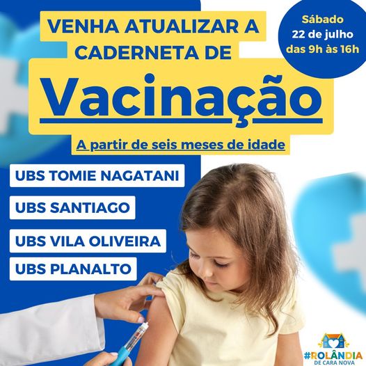 NO SÁBADO, DIA 22 DE JULHO, DAS 9H ÀS 16H, A SECRETARIA DE SAÚDE VAI FAZER UMA CAMPANHA DE MULTIVACINAÇÃO PARA ATUALIZAÇÃO DAS CADERNETAS DE VACINAÇÃO!Vai ter dose contra gripe, covid, dentre outras!A partir de seis meses de vida!Vem vacinar...