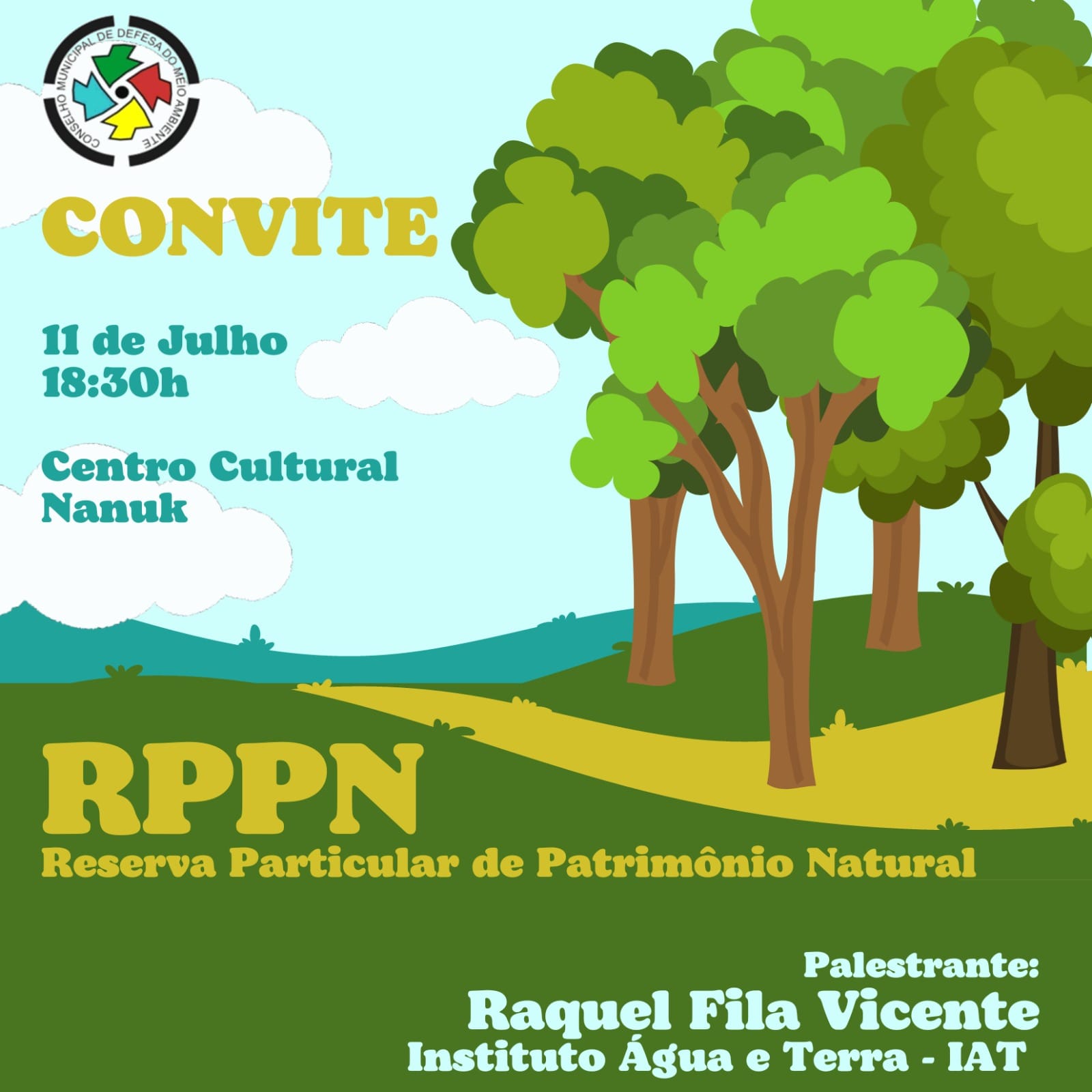 CONVITE PALESTRA: "RESERVA PARTICULAR DE PATRIMÔNIO NATURAL"A secretaria de Agricultura e Meio Ambiente e o CONDEMA (Conselho Municipal de Defesa do Meio Ambiente) convidam toda população para participar de uma palestra sobre RPPN (Reserva Particu...