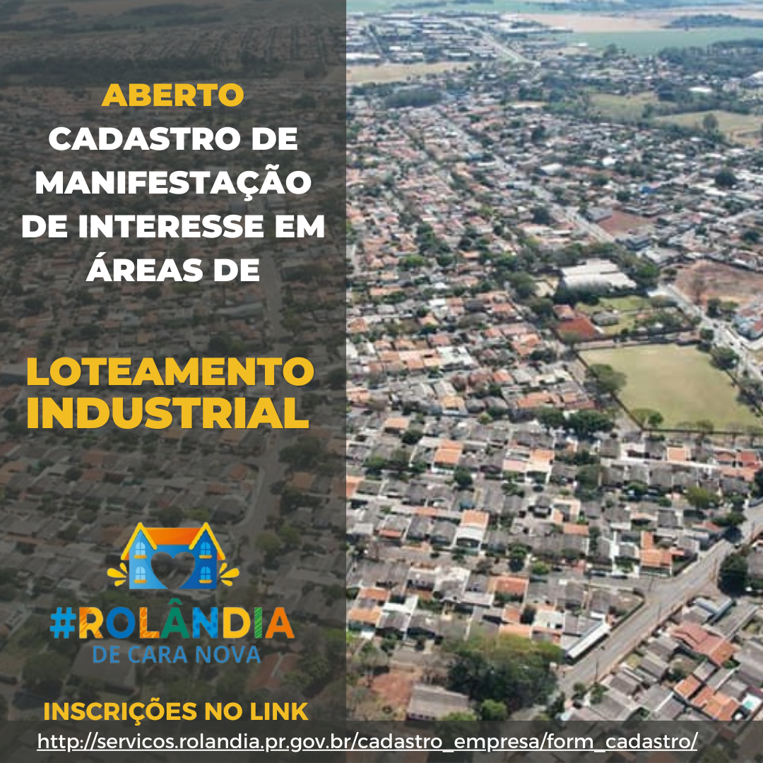 PREFEITURA ABRE CADASTRO PARA MANIFESTAÇÃO DE INTERESSE EM LOTES NO FUTURO PARQUE INDUSTRIALO município de Rolândia possui duas áreas que serão destinadas para instalação de futuras indústrias, porém faltam dados mais atualizados sobre as n...