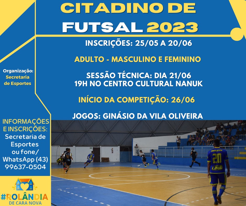 INSCRIÇÕES ABERTAS PARA O "CITADINO DE FUTSAL 2023"Confira a oportunidade e inscreva seu time!A secretaria de Esportes aguarda você!...