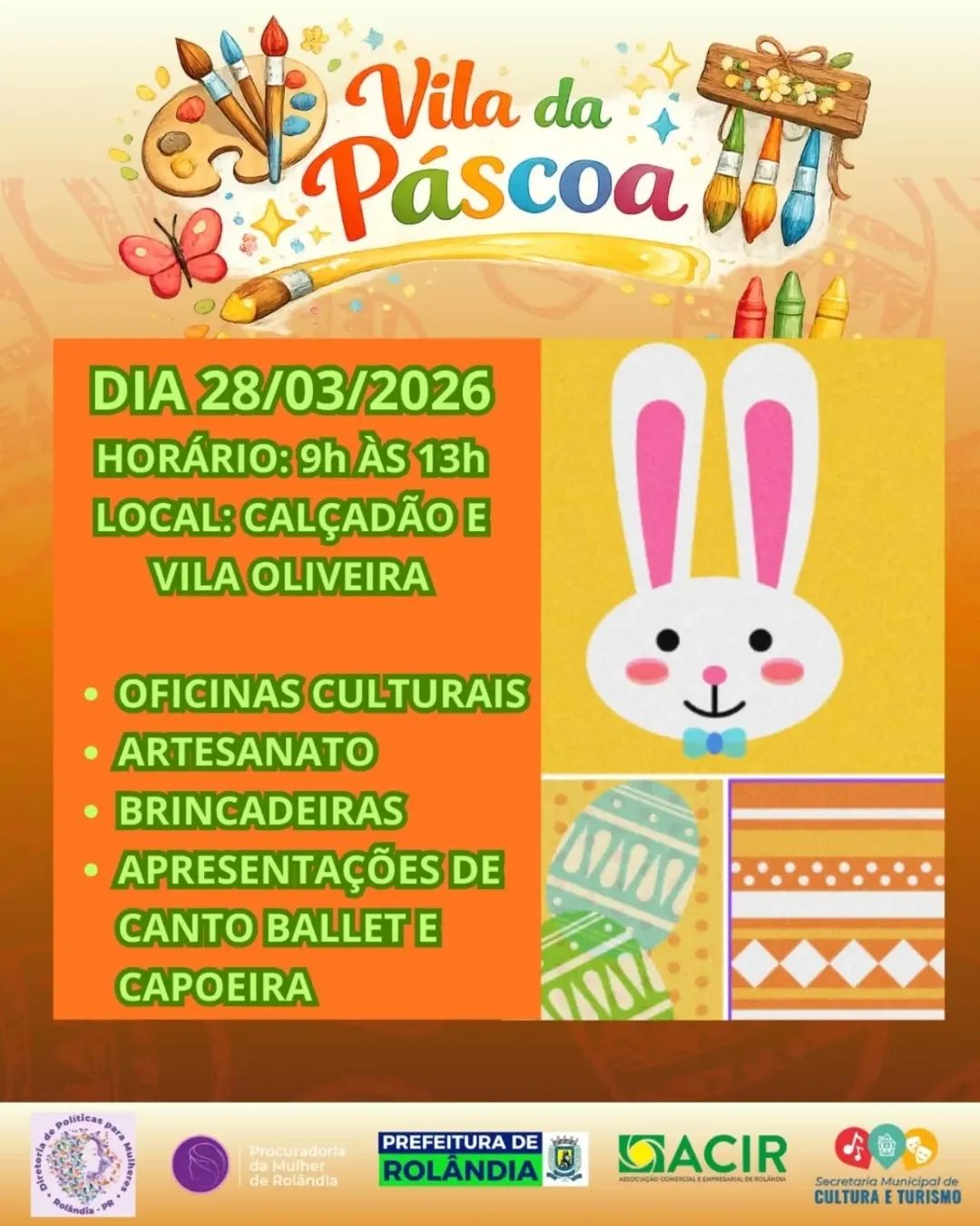 😃Sábado teremos a "Vila da Páscoa" na Vila Oliveira e no Calçadão Central🐇 ✨️A Páscoa celebra a ressurreição de Jesus Cristo, representando o triunfo da vida sobre a mo...