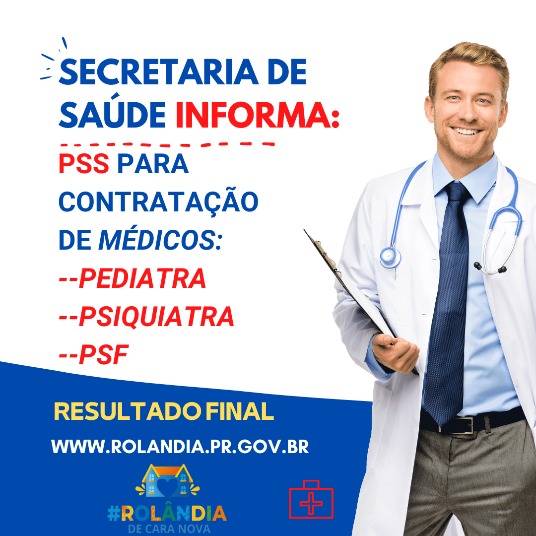 SECRETARIA DE SAÚDE INFORMA A HOMOLOGAÇÃO DO RESULTADO FINAL DO PSS PARA CONTRAR MÉDICOSA secretaria de Saúde informa sobre a homologação do resultado final do Processo Seletivo Simplificado (PSS) para contratação, por prazo determinado, co...