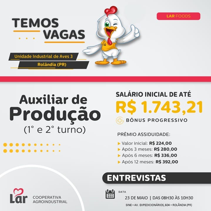 VAGAS DE EMPREGOA secretaria de Desenvolvimento Econômico informa que a Agência do Trabalhador/Sine Rolândia atende das 8h às 14h, de segunda a sexta, na Avenida dos Expedicionários, 604, centro.Para informações, 3255-1118.Atendimento por or...