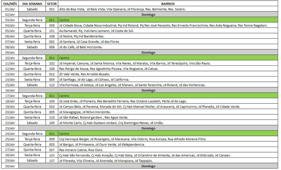 AGENDA DA SANETRAN PARA RECOLHER GALHADAS E VOLUMOSOS - ABRILA Secretaria de Agricultura e Meio Ambiente informa que a empresa terceirizada que presta serviço ao município, a SANETRAN, passa recolhendo volumosos deixados na calçada (móveis como s...