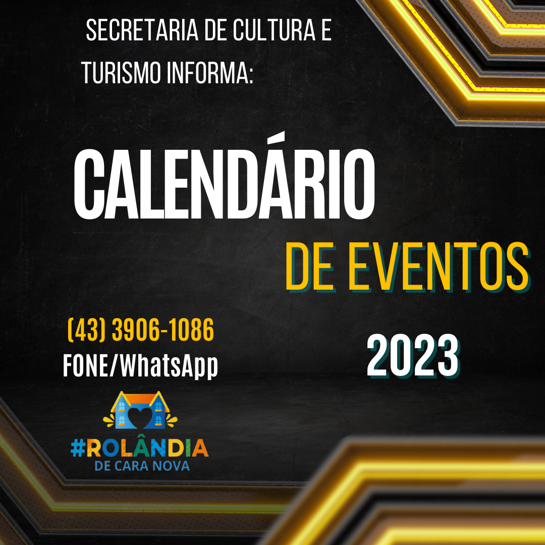 SECRETARIA DE CULTURA E TURISMO DIVULGA O CALENDÁRIO DE EVENTOS 2023A Secretaria de Cultura e Turismo de Rolândia divulga o calendário oficial de eventos do município. O documento foi formado por meio do envio de informações das entidades com s...