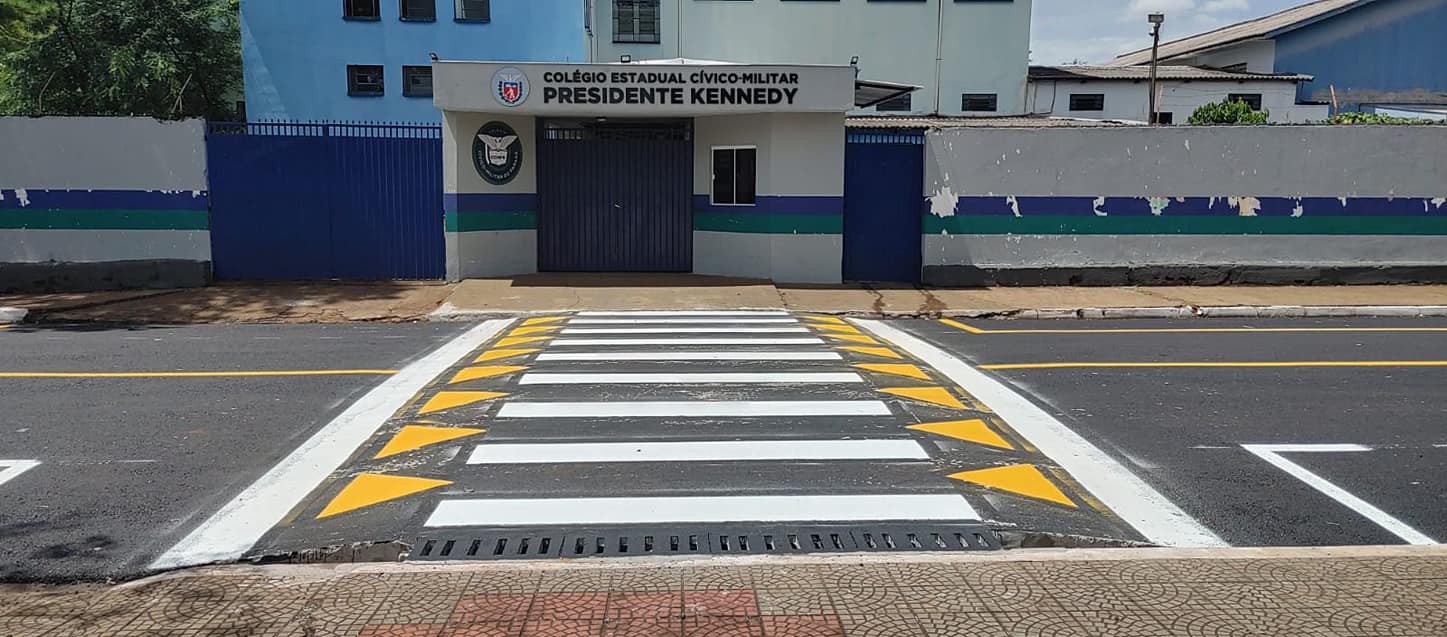 SINALIZAÇÃO DE TRÂNSITO REFORÇADA NO ENTORNO DO COLÉGIO KENNEDYA secretaria de Serviços Públicos fez a pintura e o reforço da sinalização viária nos arredores do colégio estadual cívico-militar Presidente Kennedy, centro.A medida traz ma...