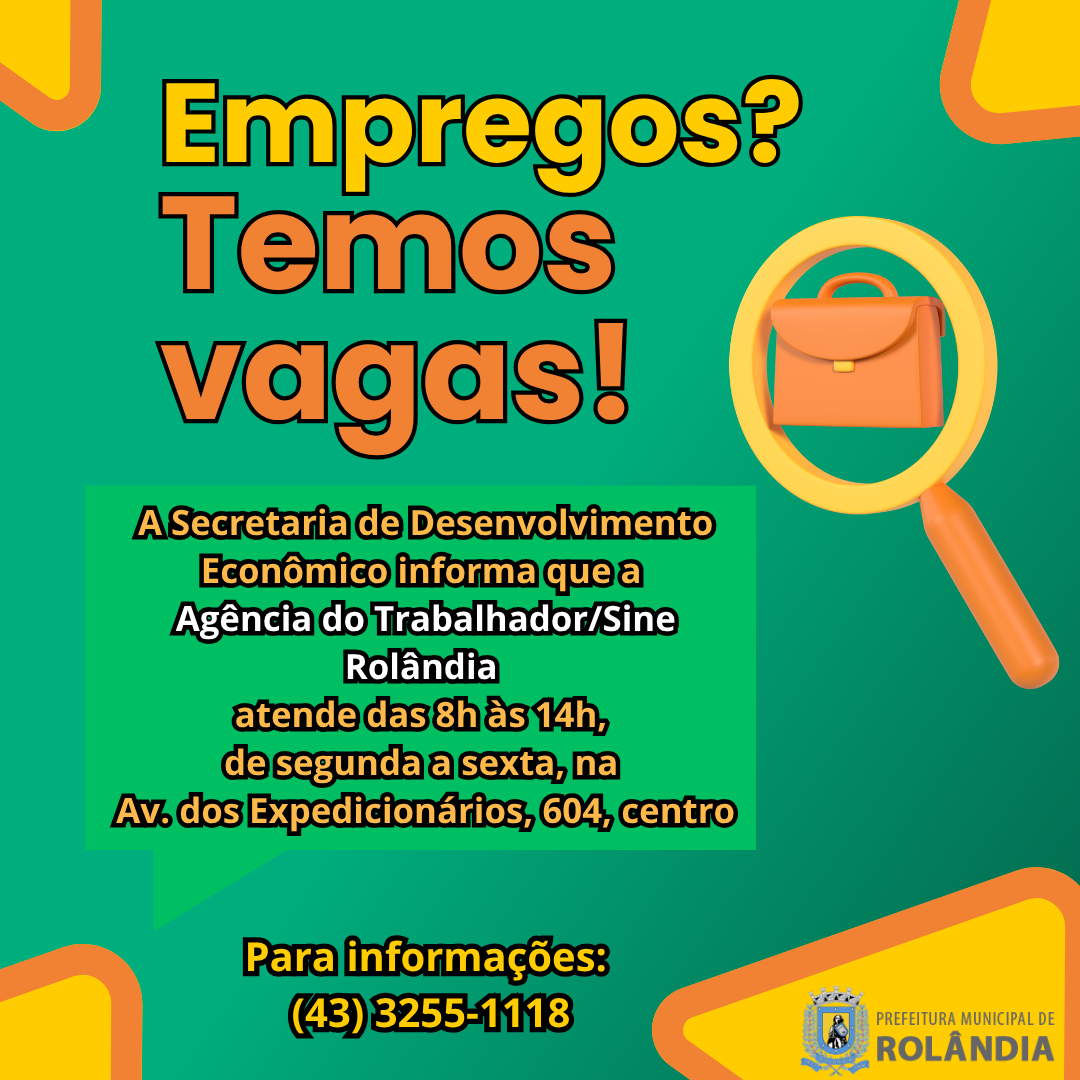 Vagas de Emprego Sine Rolândia 31/01/2026 1. Abatedor/AVES/FRANGO AGOSTO 2. Ajudante de açougueiro/Mercado 3. Ajudante de cozinha/JBS/SEARA 4. Assistente de vendas/INTERNET 5. Auxiliar administrativo 6. Auxiliar d...