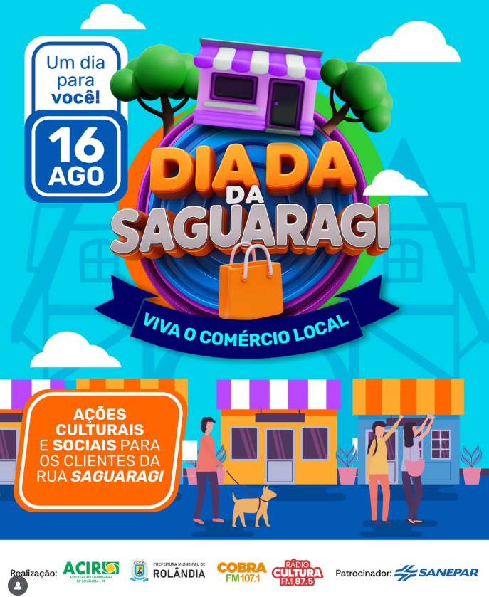SÁBADO SERÁ O “DIA DA SAGUARAGI!” Uma data especial feita para você, que valoriza o comércio local! 📅 Dia 16 de agosto (sábado) 📍 Rua Saguaragi – Vila Oliveira A partir das 8h30 ✨ Um dia...