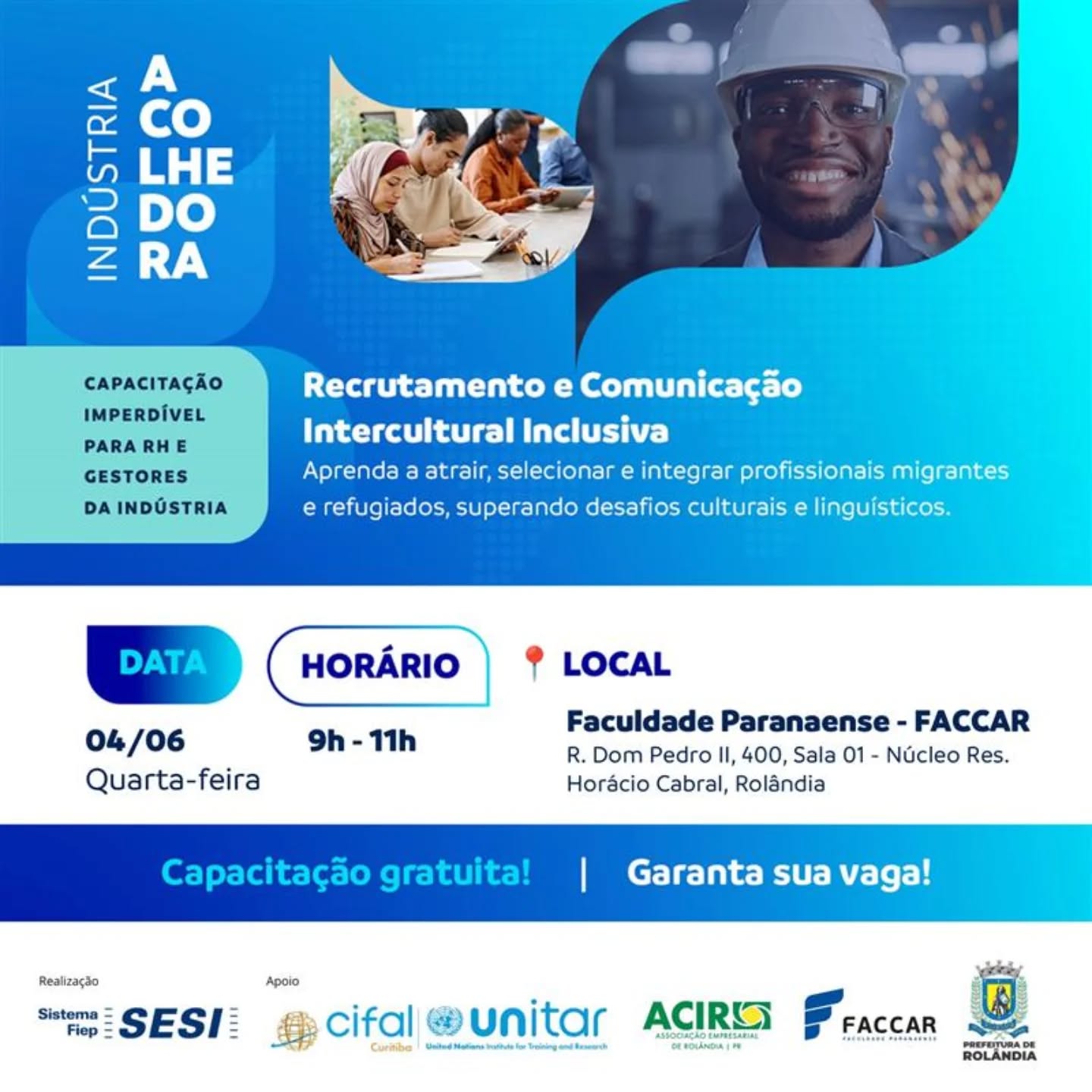 Convite Especial para Indústrias de Rolândia e região!Quer saber como contratar ou aprimorar a integração de trabalhadores migrantes e refugiados na sua empresa?Participe da capacitação “Recrutame...