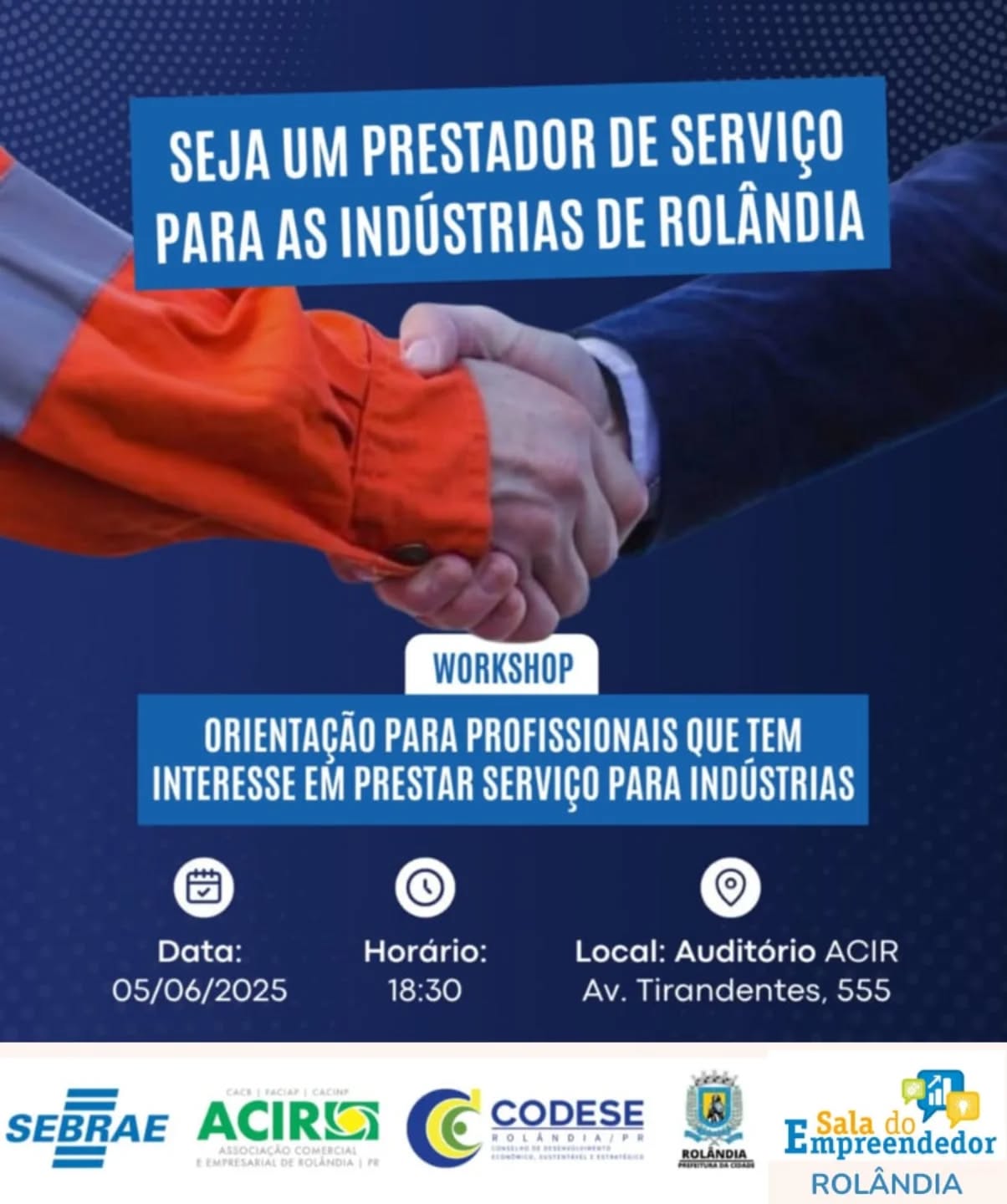 *Participe do Workshop de Prestadores de Serviços*   - Seja um prertador de serviços para as indústrias de Rolândia.   *Para quem é esse workshop?*   Prestadores de serviços que ten...