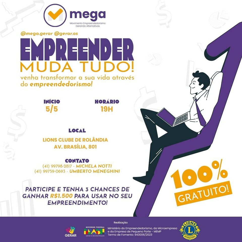 Evento gratuito para empreendedores de Rolândia   A secretaria de Desenvolvimento Econômico, por meio da Sala do Empreendedor, informa e convida os empreendedores da cidade para que participem do "Empreender Muda Tudo". &nbs...