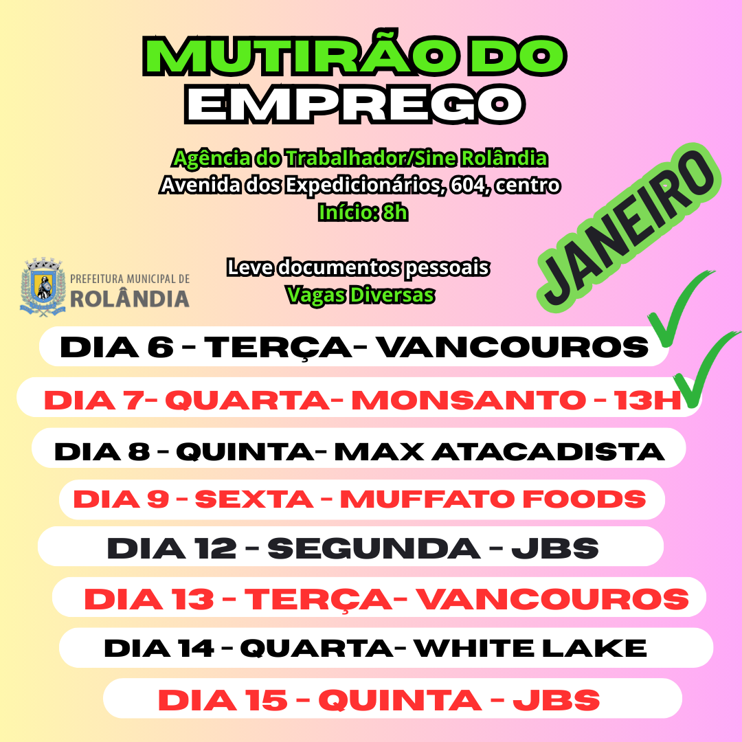 Janeiro conta com 18 mutirões de emprego no Sine!   A secretaria de Desenvolvimento Econômico, por meio da Agência do Trabalhador/SINE, informa que o mês de janeiro está com diversas oportunidades de emprego...