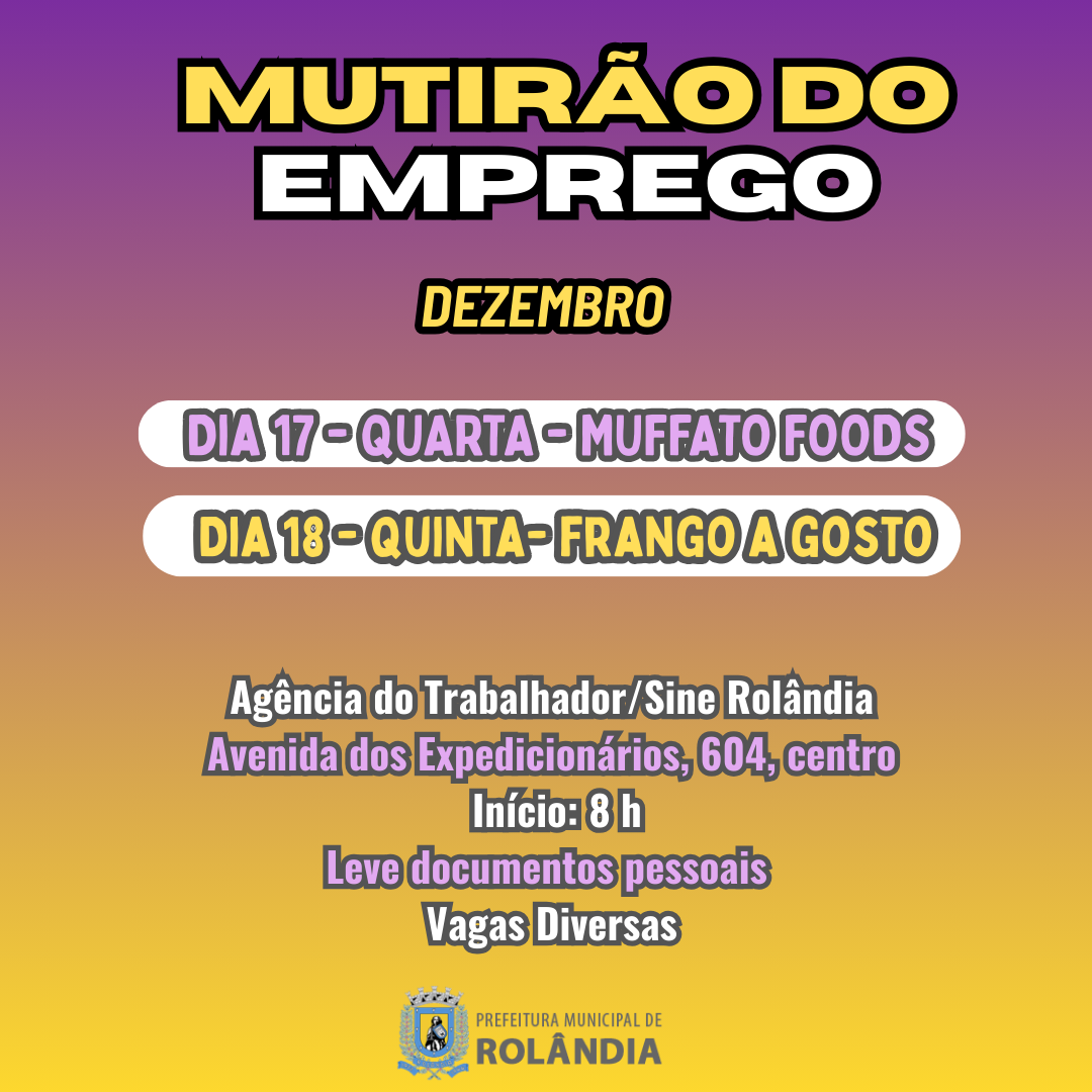 Mutirão do Emprego! Venha participar! Traga documentos pessoais!...