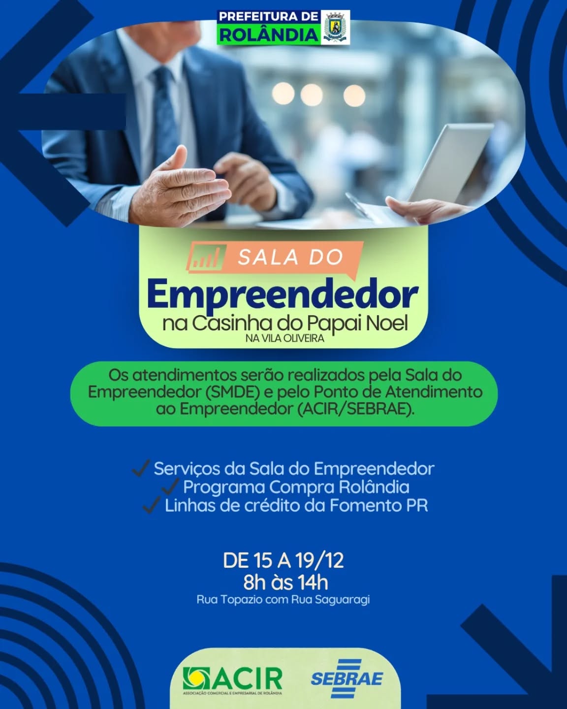 SALA DO EMPREENDEDOR ATENDE NA CASA DO PAPAI NOEL, NA VILA OLIVEIRA, ATÉ SEXT...