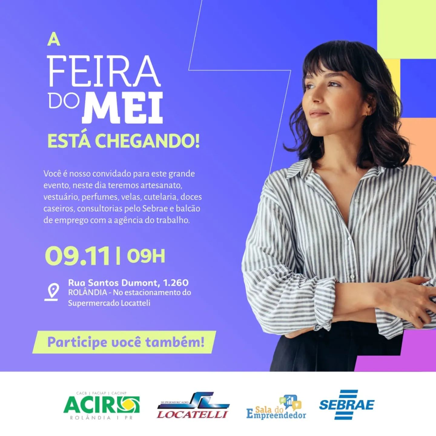 Vem aí mais uma "Feira do Mei"   A secretaria de Desenvolvimento Econômico, por meio da Sala do Empreendedor, abre inscrições para que os Micro Empreendedores Individuais (MEI'S) de Rolândia possam expor ...
