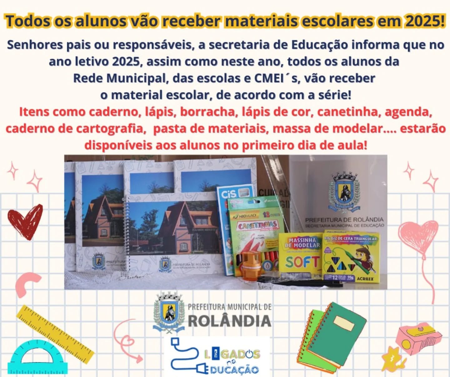 TODOS OS ALUNOS DA REDE MUNICIPAL DE ENSINO VÃO RECEBER MATERIAIS ESCOLARES EM 2025!Recado importante da secretaria de Educação!Cada estudante receberá os itens de acordo com a série matriculada....