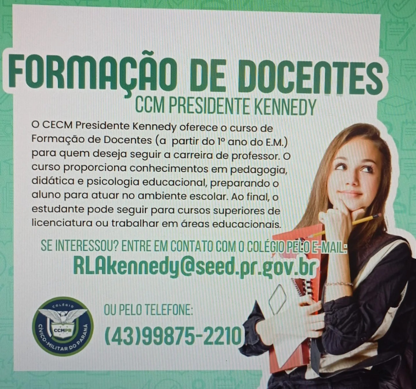 Oportunidade de formação em nível médio e profissional A secretaria municipal de Educação informa sobre um curso do colégio estadual cívico-militar Presidente Kennedy. Os alunos de forma&...