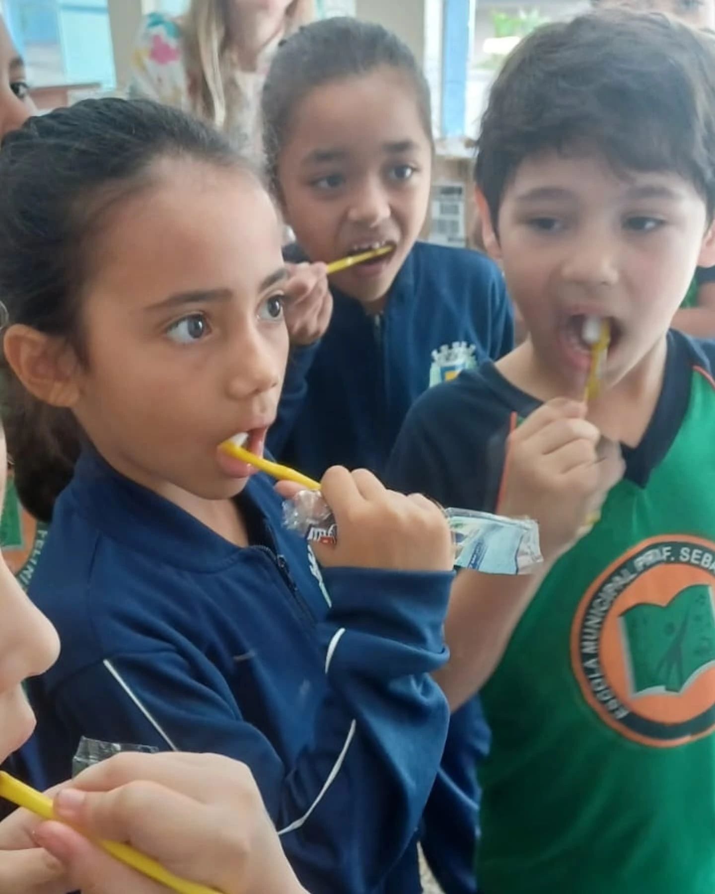 Alunos da escola municipal Professor Sebastião Feltrin aprendem, na prática, sobre higiene bucal Em trabalho conjunto entre as secretarias de Educação e Saúde, os alunos da escola municipal Professor Sebastiã...