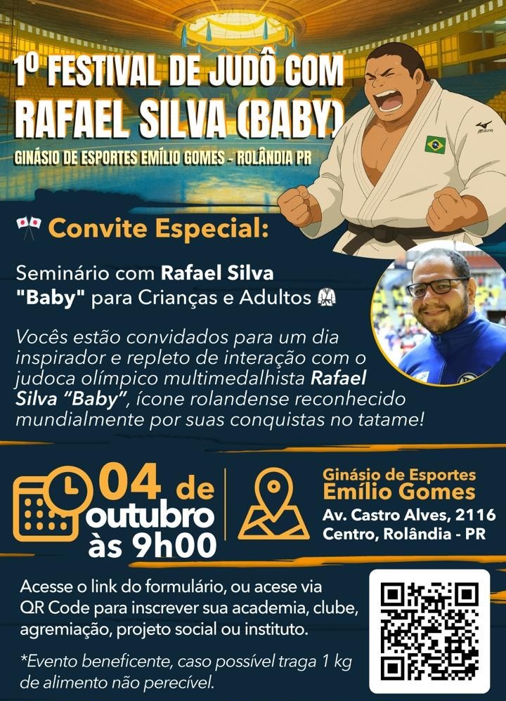1° Festival de Judô com o medalhista olímpico e mundial Rafael Silva, o "Baby"!   Venha participar e prestigiar um dos maiores nomes do esporte brasileiro e que tem raízes rolandenses!   Neste sá...