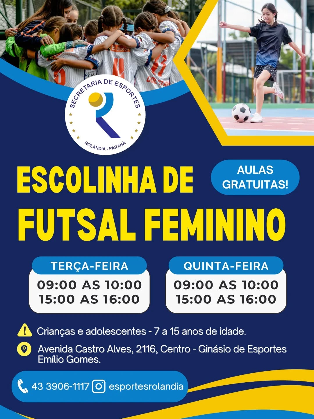 Oportunidade! Inscrições abertas! Aulas de futsal feminino!...
