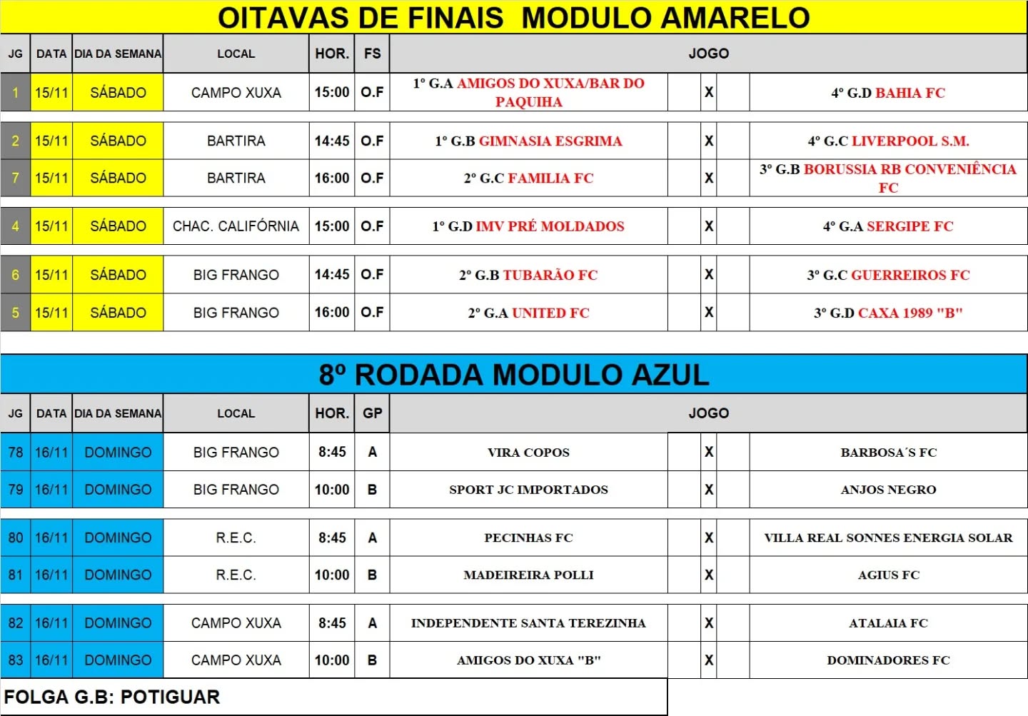 TABELA DA 14ª COPA ROLÂNDIA DE FUTEBOL SUIÇO A secretaria de Esportes informa que os jogos de oitavas de finais do módulo amarelo, as equipes de melhor campanha (estão do lado esquerdo da tabela), jogam pelo empate ...