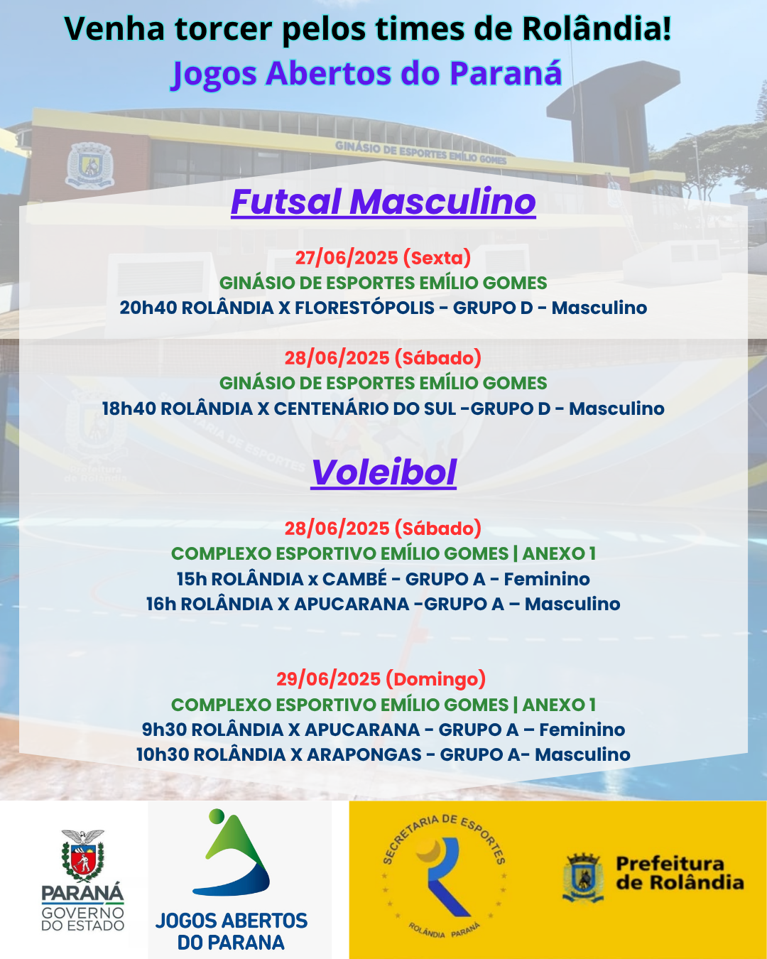 VENHA TORCER PELOS ATLETAS DE ROLÂNDIA NA FASE REGIONAL DOS JOGOS ABERTOS DO ...