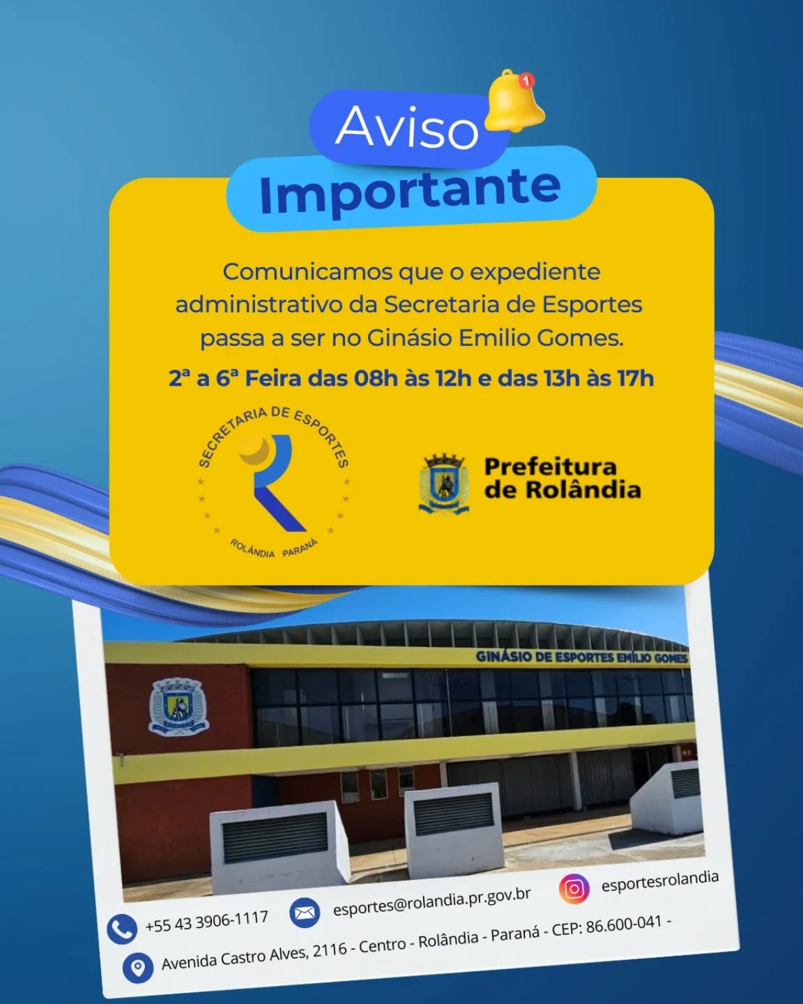 Secretaria de Esportes agora atende no Ginásio Emílio Gomes!