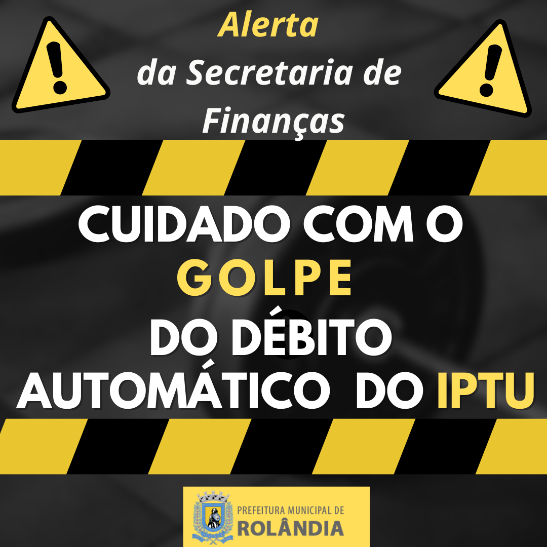 ALERTA DE GOLPE: DÉBITO AUTOMÁTICO DO IPTU A secretaria de Finanças alerta o contribuinte que tem débito direto automático (DDA) em sua conta em banco: NÃO EXISTE CONVÊNIO DA PREFEITURA DE ROLÂN...