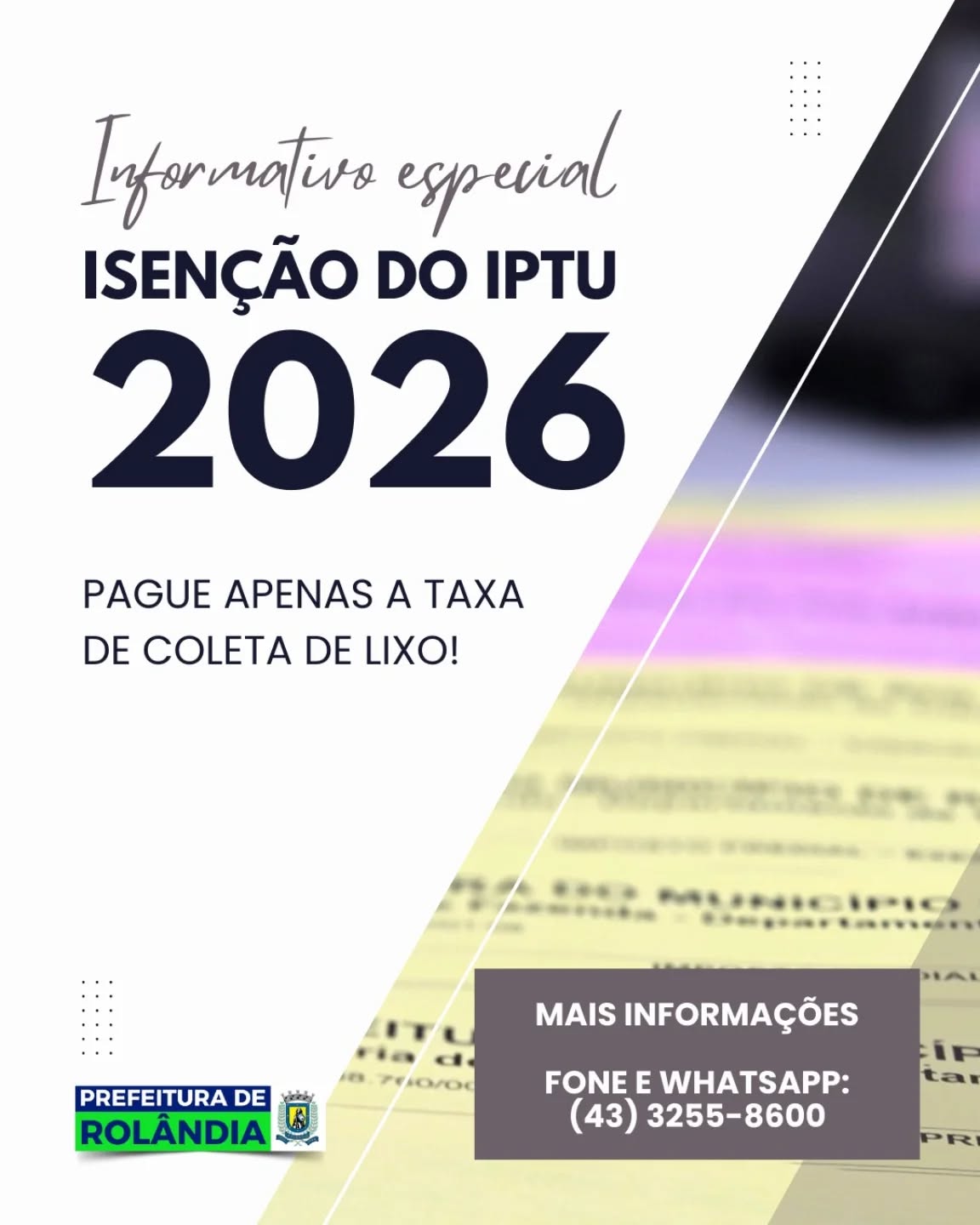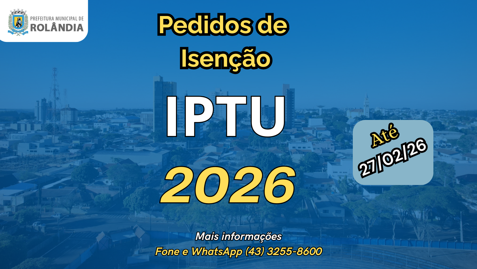 Pedidos de isenção do IPTU 2026 podem ser feitos até dia 27/02 A secretaria de Finanças informa sobre o pedido de isenção do IPTU 2026 pode ser feito até 27/02/2026 Quem pode requerer: I - os ...