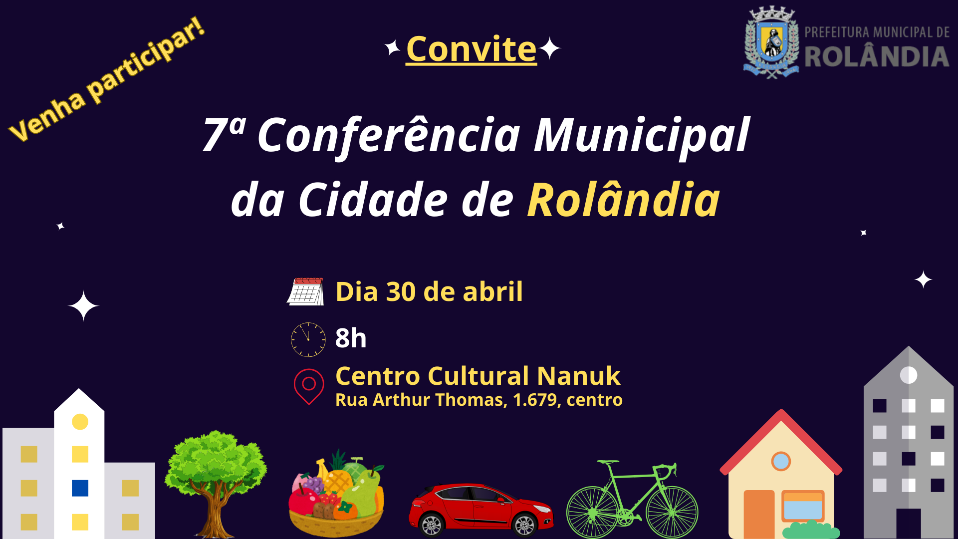 VENHA PARTICIPAR DA “7ª CONFERÊNCIA MUNICIPAL DA CIDADE DE ROLÂNDIA”