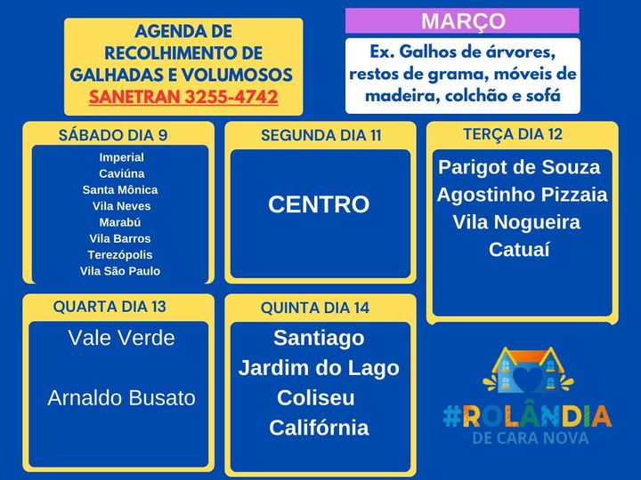 AGENDA DA SANETRAN PARA RECOLHER GALHADAS E VOLUMOSOS