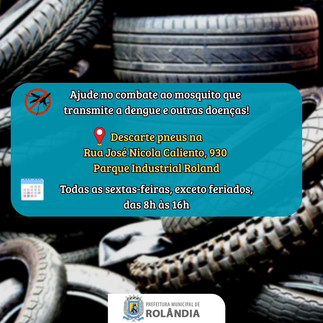 Ajude no combate ao mosquito que transmite a dengue e outras doenças!   Descarte pneus na Rua José Nicola Caliento, 930 Parque Industrial Roland   Todas as sextas-feiras, exceto feriados,das 8h às 16h. ...