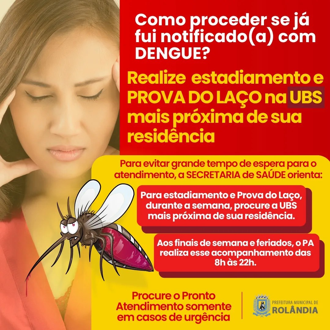 A secretaria de Saúde informa que dengue é um diagnóstico que precisa ser acompanhado. Se você foi notificado com a doença, obedeça o protocolo e faça todo o acompanhamento para diminuir risco de comp...