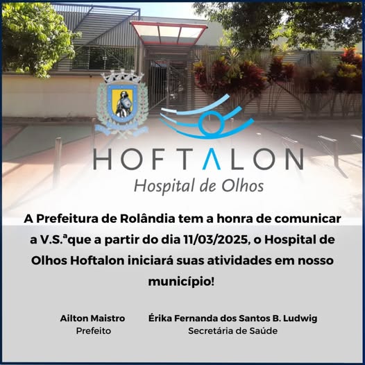 UNIDADE DE ROLÂNDIA DO HOFTALON VAI INICIAR ATENDIMENTOS NO DIA 11 DE MARÇO   Um sonho que se transforma em realidade!   Uma parceria entre a Prefeitura de Rolândia, por meio da Secretaria Municipal de Sa&ua...