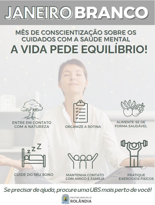 Janeiro Branco: Mês de Conscientização sobre a Saúde Mental   A secretaria de Saúde informa que janeiro é um mês de renovação. E é nesse espírito que surgiu a cam...