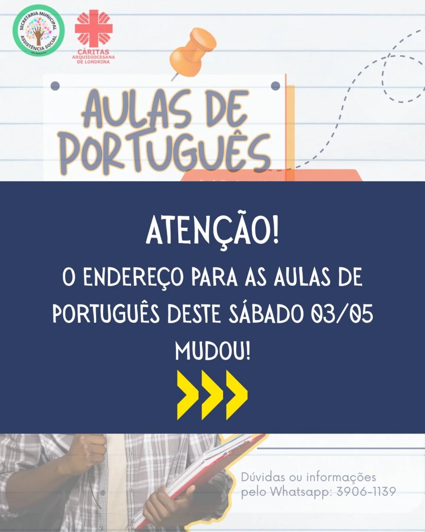 VOCÊ QUE VEIO DE OUTRO PAÍS E ESCOLHEU ROLÂNDIA COMO NOVA CASA, VENHA APRENDER A LÍNGUA PORTUGUESA! A Secretaria de Assistência Social, em parceria com a Cáritas Arquidiocesana de Londrina, tem a alegria de a...